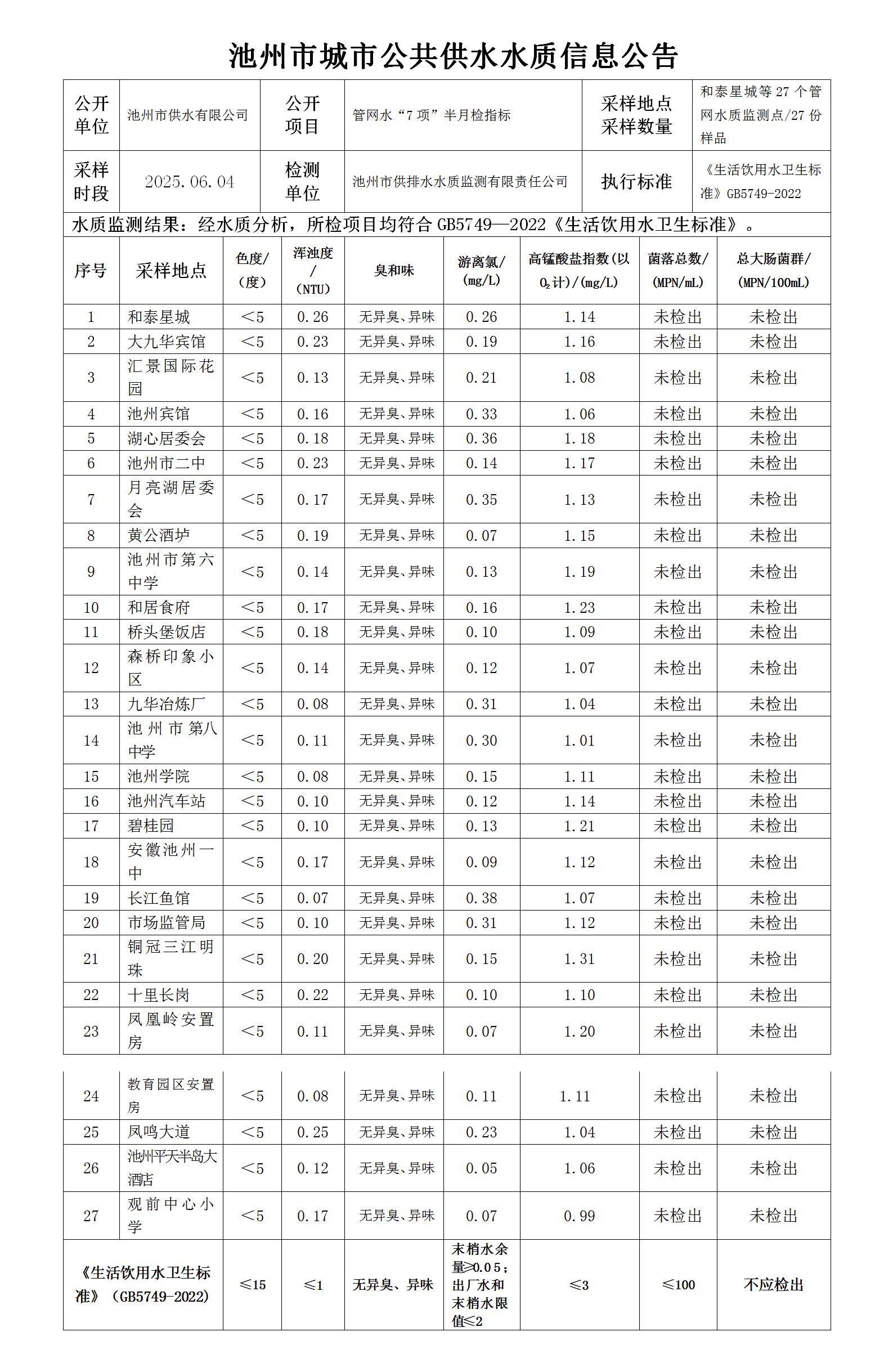池州市城市公共供水水質(zhì)信息公告管網(wǎng)水“7項(xiàng)”半月檢指標(biāo)6-1 | |